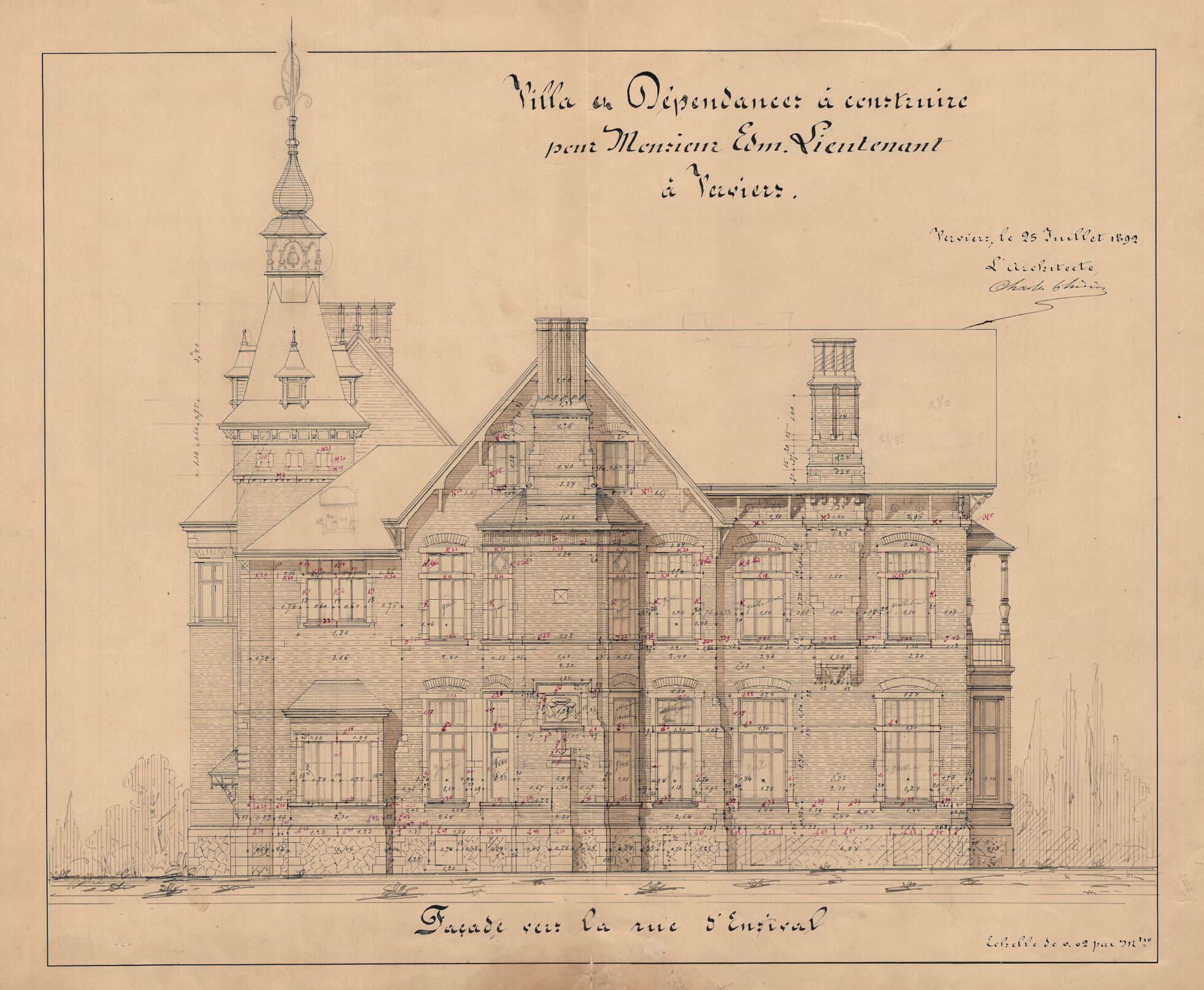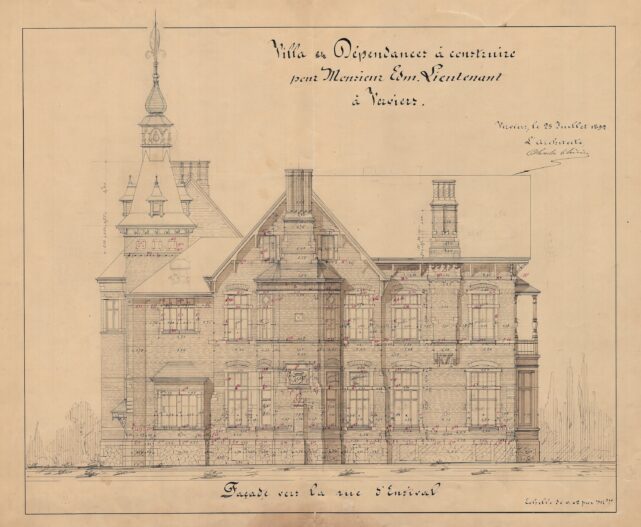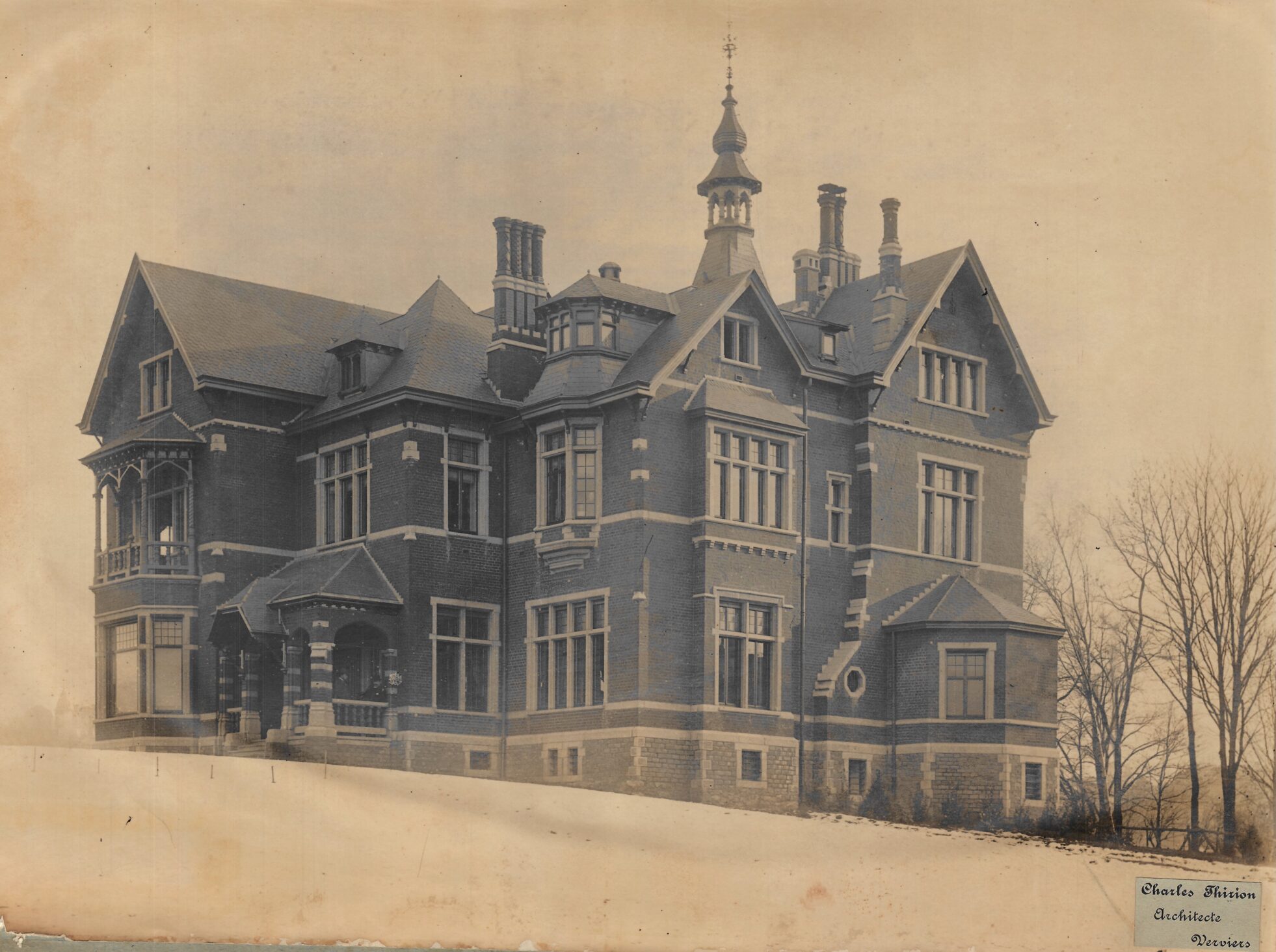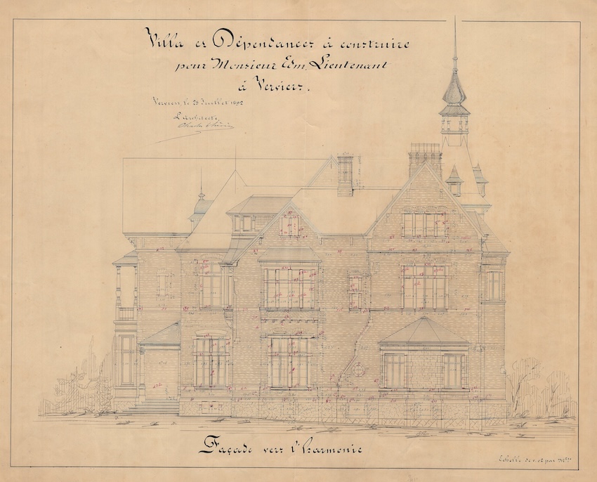 En 1892, cinq ans après son mariage avec Anne-Justine Hauzeur, Edmond Lieutenant, riche industriel verviétois, confie la conception de la villa conjugale à Charles Thirion. Le maître d’ouvrage dispose d’un vaste terrain idéalement situé dans un secteur de la ville en pleine expansion, à proximité du futur théâtre en construction et de la future gare, dont les expropriations commencent quelques années plus tard. Le terrain, en promontoire, domine le parc de l’Harmonie. Construite en brique et soulignée de chaînages et d’encadrements en petit granit, la villa s’inscrit dans l’esthétique des demeures de la fin du XIXᵉ siècle. Avec ses volumes complexes et asymétriques, ses multiples ailes, ses avancées et ses décrochements, elle témoigne du statut social de son maître d’ouvrage. Les toitures pentues en ardoise sont ponctuées de nombreux pignons, de lucarnes et de hautes cheminées, tandis qu’une petite tour centrale surmontée d’un lanternon domine l’ensemble. Un perron couvert ainsi qu’un balcon sont tournés vers la rue d’Ensival. Attentif aux détails, Thirion dessine de nombreux éléments comme les serrureries ou divers éléments en fer forgé en leur donnant une valeur décorative dans le ton de l’époque. À la villa, le commanditaire adjoint un généreux pavillon destiné aux écuries et aux dépendances. En 1910, Edmond Lieutenant quitte la villa pour s’installer à Tilff.